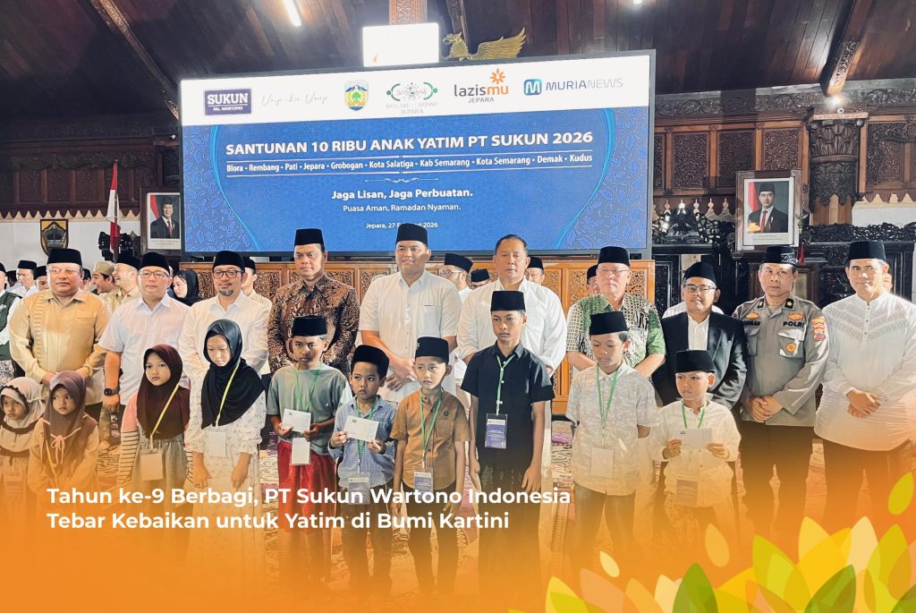 JEPARA – Semangat berbagi kebaikan kembali menggema di Bumi Kartini. PT Sukun Wartono Indonesia menyelenggarakan kegiatan santunan kepada 1.000 anak yatim yang dipusatkan di Pendopo Kartini Kabupaten Jepara, Jawa Tengah, Jumat (27/2/2026).